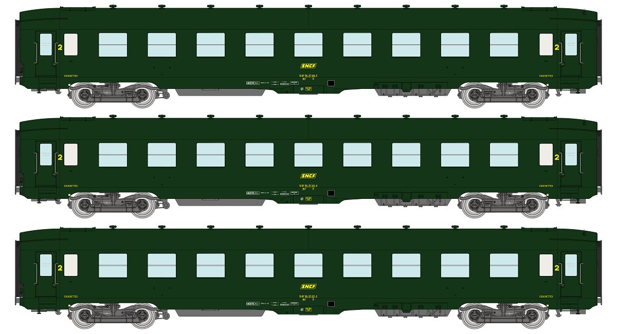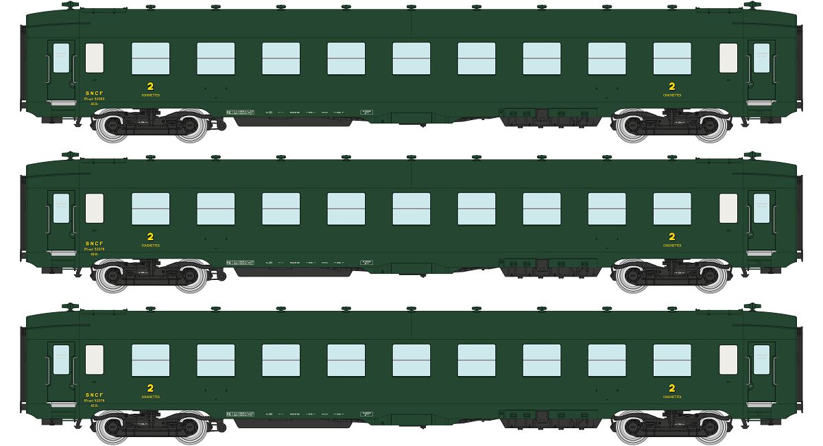 SET of 3 U52 DEV AO Sleeping Cars B9c9, Green 301, boxed SNCF logo Era IV